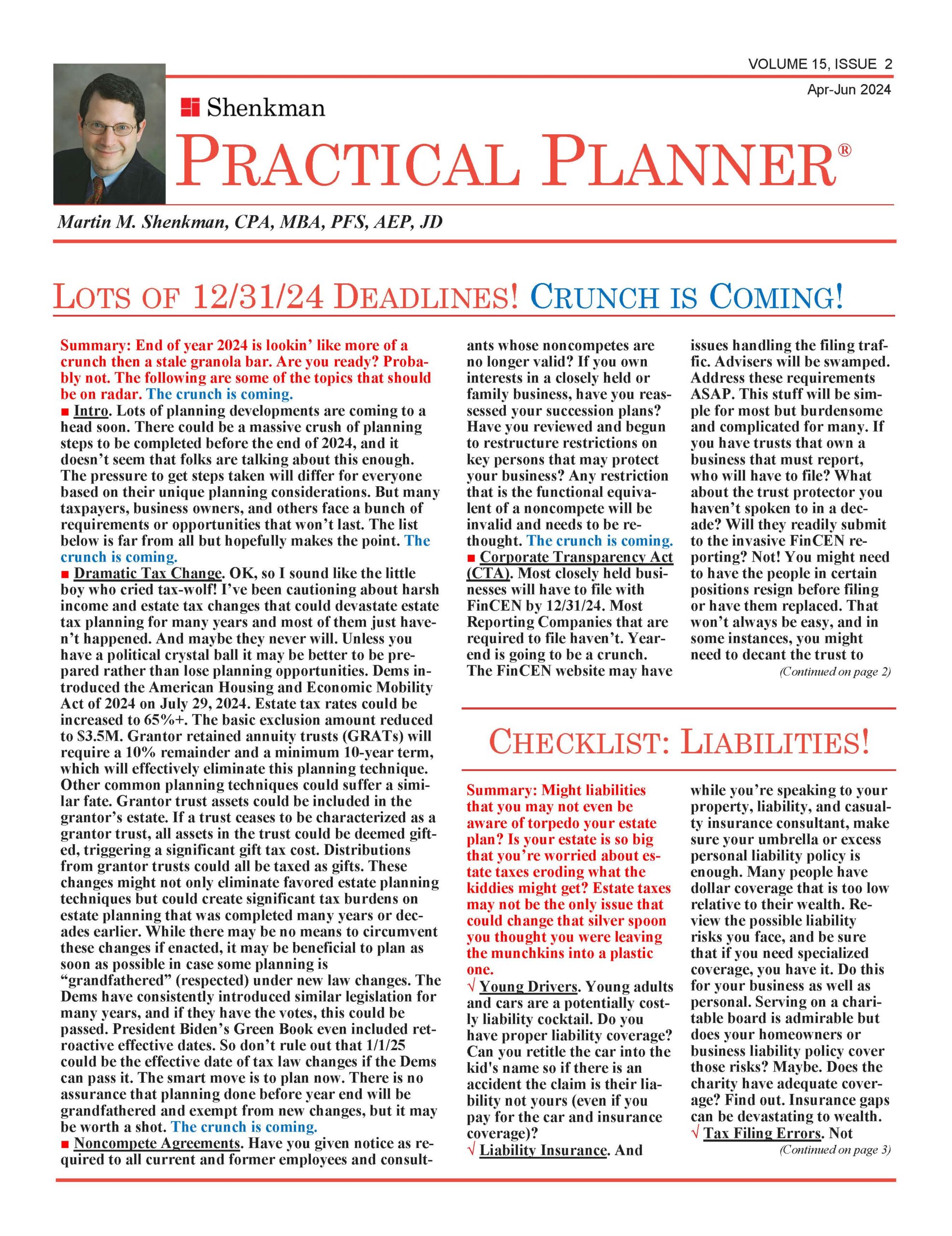 Lots of 12/31/24 Deadlines! Crunch is Coming!